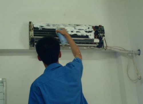 | 紫金空调维修师傅给紫金用户上门维修清洗空调。 |
